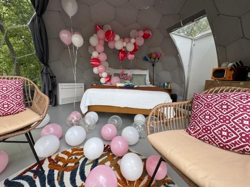 Enhance your special moment with a custom balloon arrangement inside the dome, tailored to your occasion—be it a romantic proposal or a memorable anniversary celebration. For an additional $150, we’ll design and install a stunning display to surprise and delight your loved one, creating the perfect ambiance for your event. (Image as an example only)QuantityComing soon