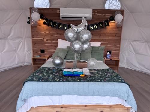 Celebrate your loved one ’s birthday in style with a vibrant balloon arrangement inside the dome, customized to make their day extra special. For an additional $100, we’ll create a festive and personalized display, adding a burst of joy and color to their birthday experience. (Image as an example only)QuantityComing soon